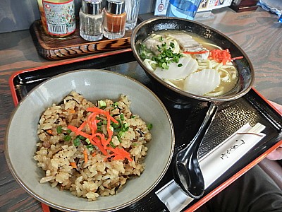 そば単品で頼んでも白いご飯はサービスで頂けるので沖縄の炊き込みご飯ジューシー頼んでる人は少なかったかな?