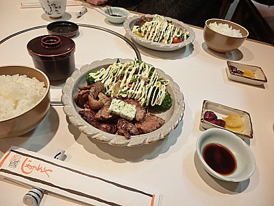 形は不揃いながら夜に提供される上等なお肉の切れ端なので不味かろうはずはなく、お肉の上に乗っているガーリックバターだけで頂いても美味しいのですが、特製のタレをつけて食べるとご飯が進むこと進むこと。