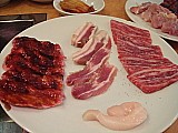 週替わりランチ(牛内モモにカルビ・塩豚)とA定食(特撰カルビ・地鶏)をチョイス。