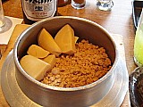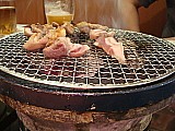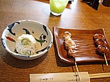 先に焼き鳥2本&ポテトサラダが頂けるのでビールをちびちび飲っていたら、釜飯の出来上がり~♪