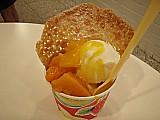 ココナッツとマンゴーのジェラートのコンビでパインとマンゴーの果肉が入ってるはずなんだけど、パインは見かけなかったような・・(汗)。
