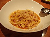 続いての旬の素材満載のパスタはシーフードやからすみが入った手打ちの(たぶん)タリオリーニ。