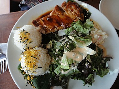 大体、ポークかチキンのプレートなんだけど、この日もポークソテー・スモークソイソース。