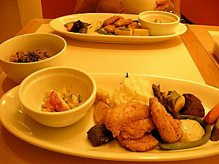 メインは2人とも“富士高原鶏ササミ揚げマサラマヨネーズ”。